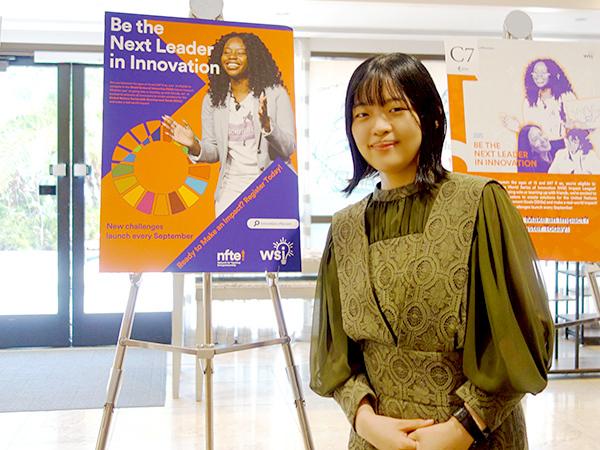 壇上では、堀江さんが自らの名前と国名を堂々と述べ、中央へと進み表彰状を受け取りました。