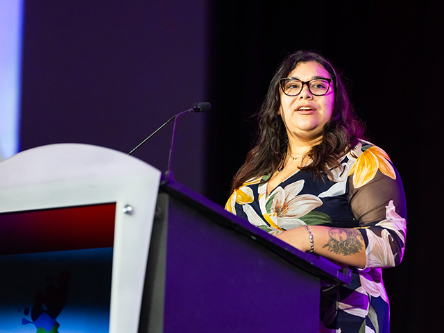 式は、大会を主催するCertiportのTy Kenworthy氏の登壇によって幕を開けました。続いて、2025年決勝戦のクライアントであるNFTEのCheyanne Ornelas氏、そしてAdobeのLiana Maharaj氏から、それぞれ講評が述べられました。